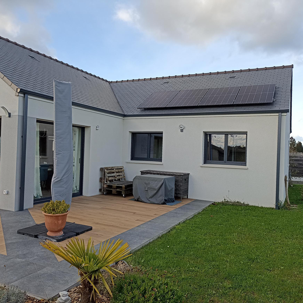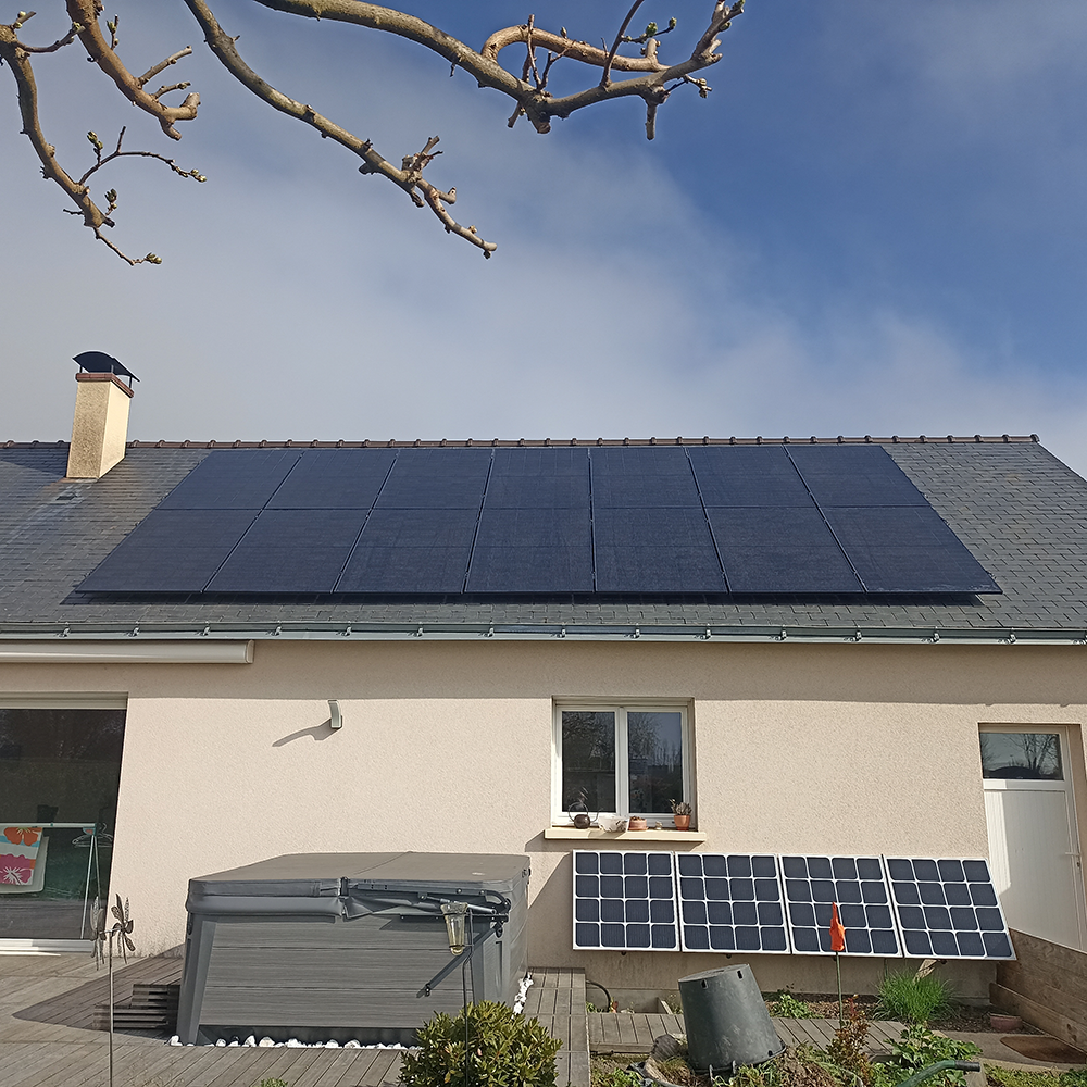 Pour ce projet, nous avons installé un système photovoltaïque d’une puissance de 3 kWc, conçu avec une orientation Est/Ouest afin d’optimiser la production tout au long de la journée. Ce choix d’implantation permet de capter efficacement l’énergie solaire dès le lever du soleil jusqu’en fin d’après-midi, offrant ainsi une répartition équilibrée de la production.
