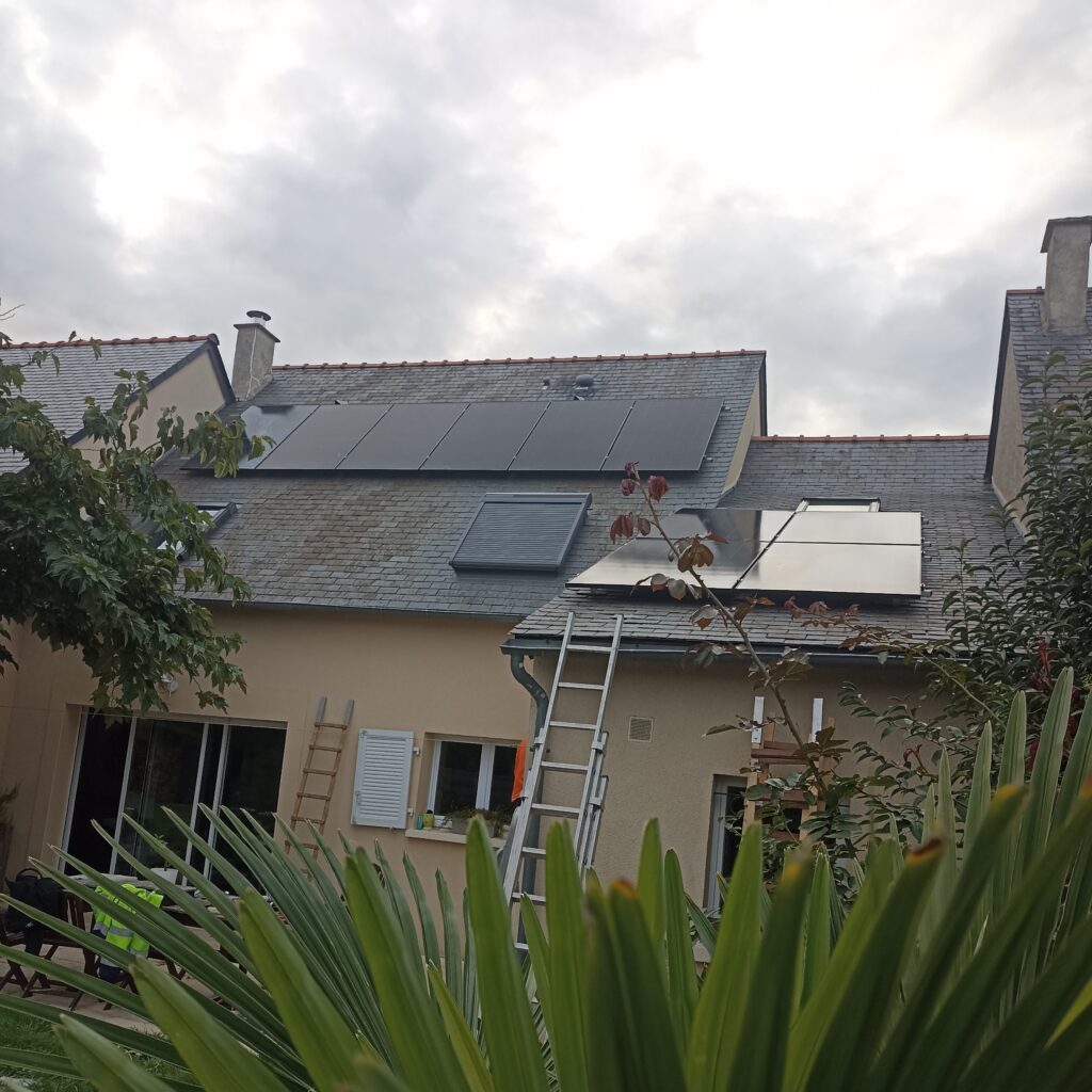Remplacement d’un système d’intégration par une nouvelle installation de panneaux solaires fixés au-dessus de la toiture (système K2), avec remise en place soignée des ardoises pour garantir l’étanchéité et l’esthétique de la maison.